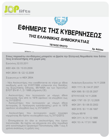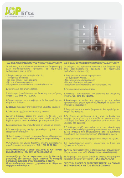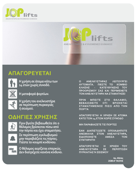 και οδηγίες για τους ανελκυστήρες σας, όπως: